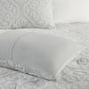 This shabby chic farmhouse style comforter set features a tufted white medallion pattern on top of tightly woven black and white threads, giving the bedding set a natural grey appearance from afar. Also included are two matching shams featuring the same medalltion motif. The reverse is a solid grey, made of soft microfiber for a comfortable night's sleep. Made with 100% hypoallergenic polyester filling, this bedding set is not only stylish but also practical.