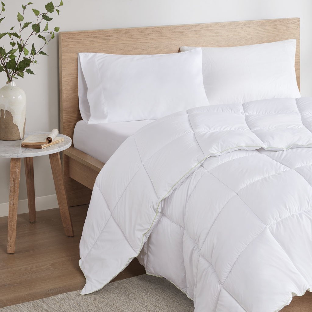 The Clean Spaces Allergen Barrier Antimicrobial Down Alternative Comforter offers a refreshing and hygienic update to your bed. This down alternative comforter features an allergen barrier that provides a soft protective layer and also finished with an Ultra Fresh anti-microbial treatment that provides odor control, inhibiting bacteria buildup, and keeping linen fresher, longer. Active for multiple washes, this treatment implements a superior long-lasting durable performance. This hypoallergenic comforter is also OEKO-TEX certified, meaning it does not contain any harmful substances or chemicals to ensure quality comfort and wellness. Items in the set may come in a rolled or compressed packaging, which will need to be fluffed up or steam ironed before use to remove wrinkles.