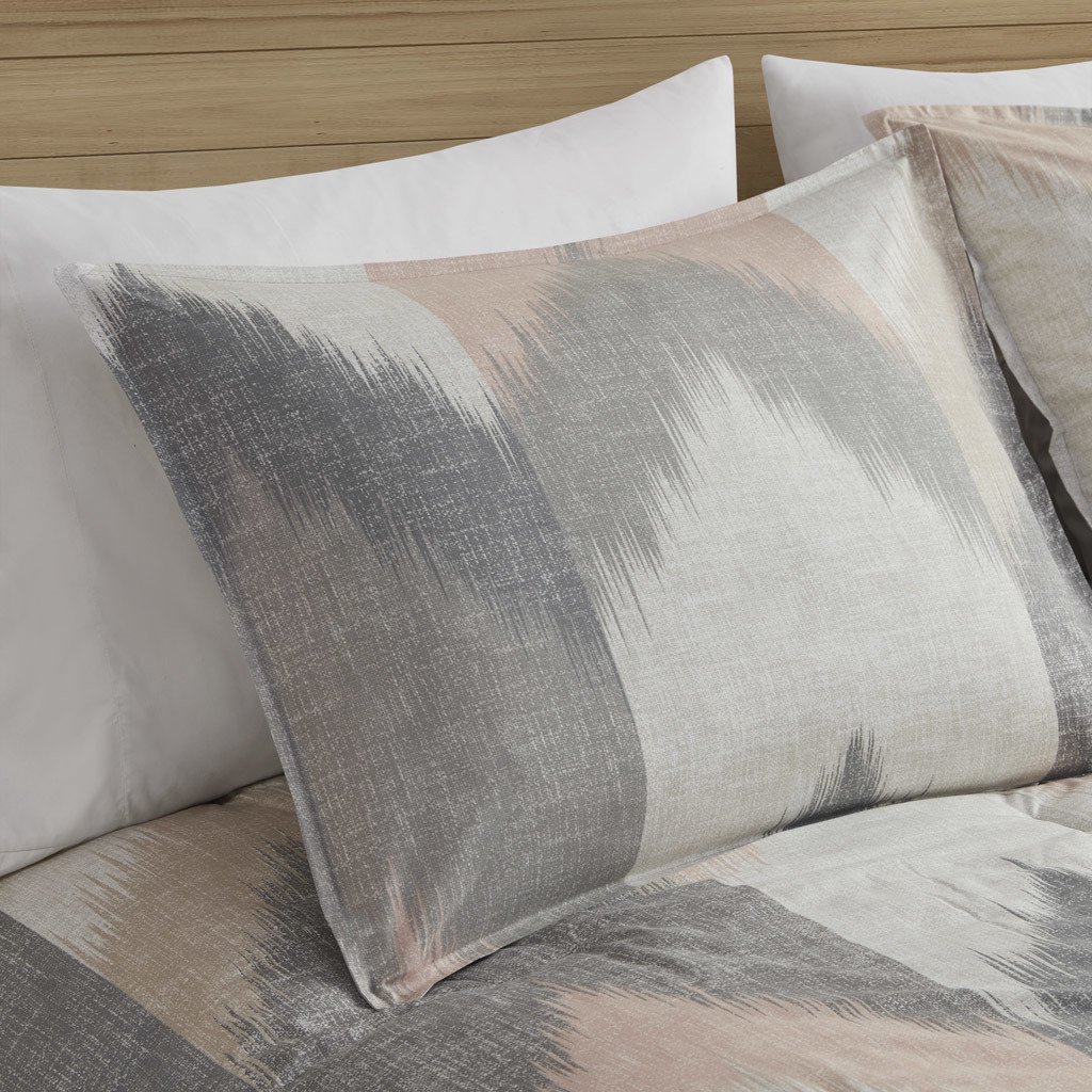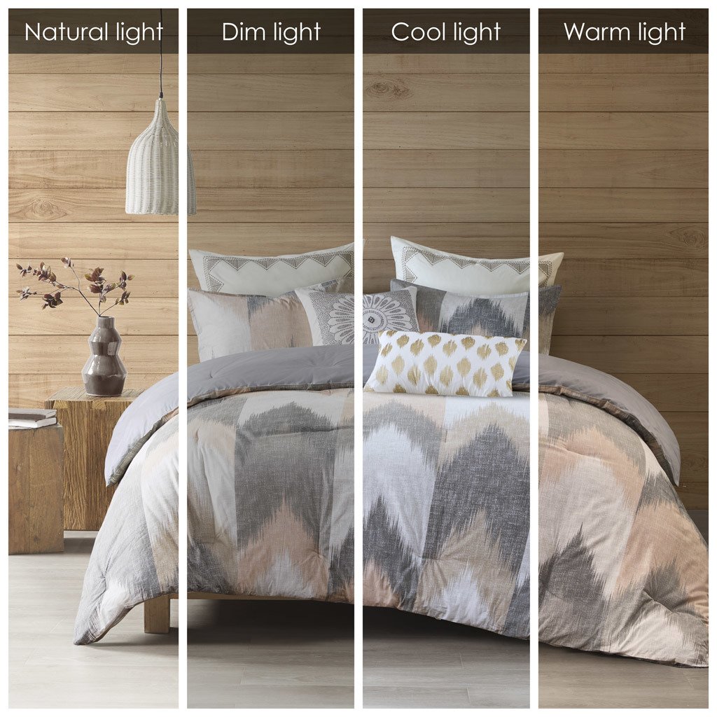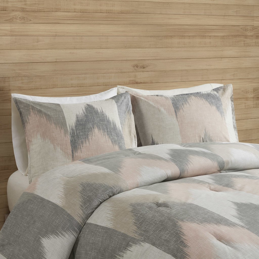 Elevate the beauty and style of your bedroom with the INK+IVY Alpine Comforter Mini Set. This cotton comforter set flaunts a sophisticated ikat chevron print on the face with a solid reverse to create a striking modern and elegant look. The 2 matching shams coordinate with the design of the cotton comforter to complete this dynamic bedding set. This comforter set is OEKO-TEX certified, meaning it does not contain any harmful substances or chemicals, and uses an antimicrobial treatment that provides built-in freshness protection, reducing the growth of odor causing bacteria to keep fabric lasting longer. Euro shams and decorative pillows are sold separately.