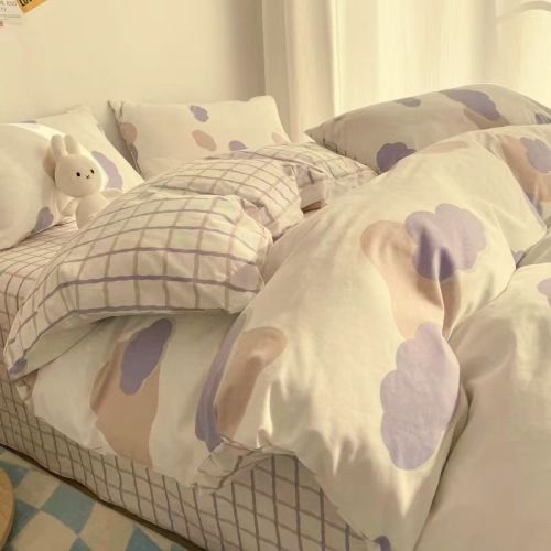 Home > Double-piece Foggy Gray Quilt Cover Four-piece Bedding Sheet Dormitory Bed Three-piece Set