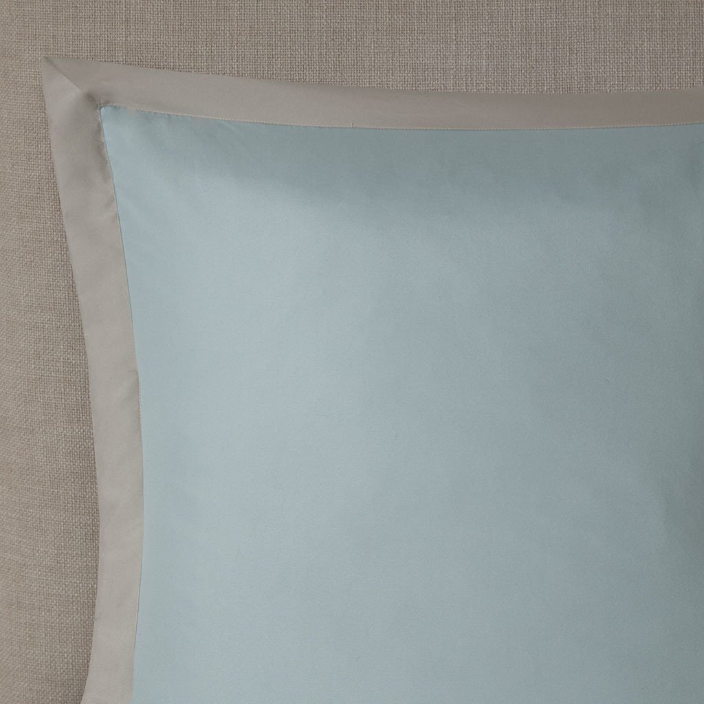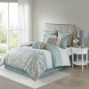 Set includes comforter, seafoam bedskirt, 2 shams, 2 seafoam euro shams, 1 oblong and 1 square pillows