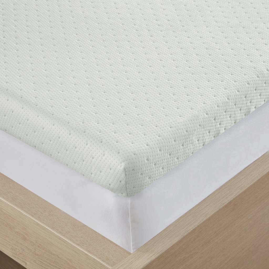 The Clean Spaces 3" Green Tea Foam Topper with Cooling Removable Cover provides eco-friendly and durable comfort to your bed. Made from soft comforting memory foam, this mattress topper creates a custom fit for your body to give you a peaceful night's sleep. A Green Tea infusion is added to the memory foam to maintain freshness and help eliminate odors, allowing you to wake up feeling restored and refreshed. The topper also comes with a zippered machine washable removable cover that features a unique fabrication that's always "crisp and cool to the touch". This foam topper is also OEKO-TEX certified, meaning it does not contain any harmful substances or chemicals to ensure quality comfort and wellness. The packaging technology allows the topper to be efficiently compressed into one box that's easily shipped to your door. Simply unbox, unroll, and this topper does the rest, expanding to its original shape within 72 hours.