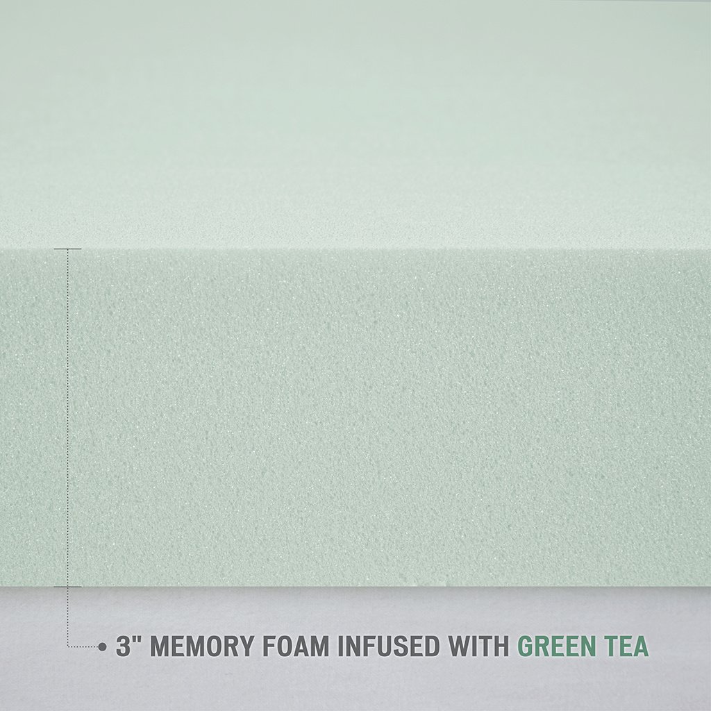 3" Green Tea Foam Topper with Cooling Removable Cover