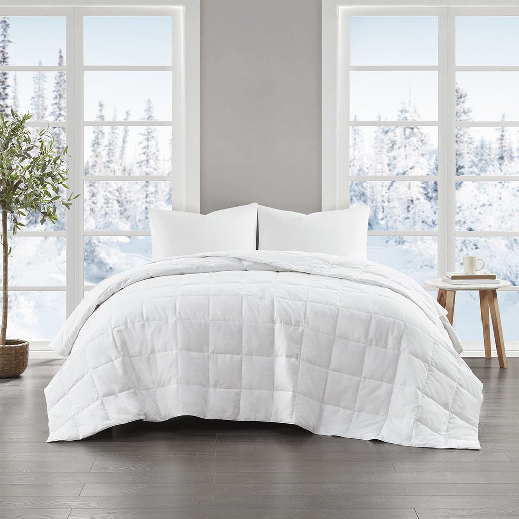 Great for all seasons, the True North by Sleep Philosophy Four Seasons Goose Feather and Down Filling Blanket is sure to keep your warm and cozy. This blanket uses soft goose feathers and down filling to create a rich and lush comfort that's perfect all year long. The downproof fabric features classic box quilting to evenly secure the warm down filling across the blanket and keep it from leaking out. Great for use in the summer heat or as an added layer in cold weather, this down blanket is machine washable for easy care. This all-weather blanket is also OEKO-TEX certified, meaning it does not contain any harmful substances or chemicals to ensure quality comfort and wellness.