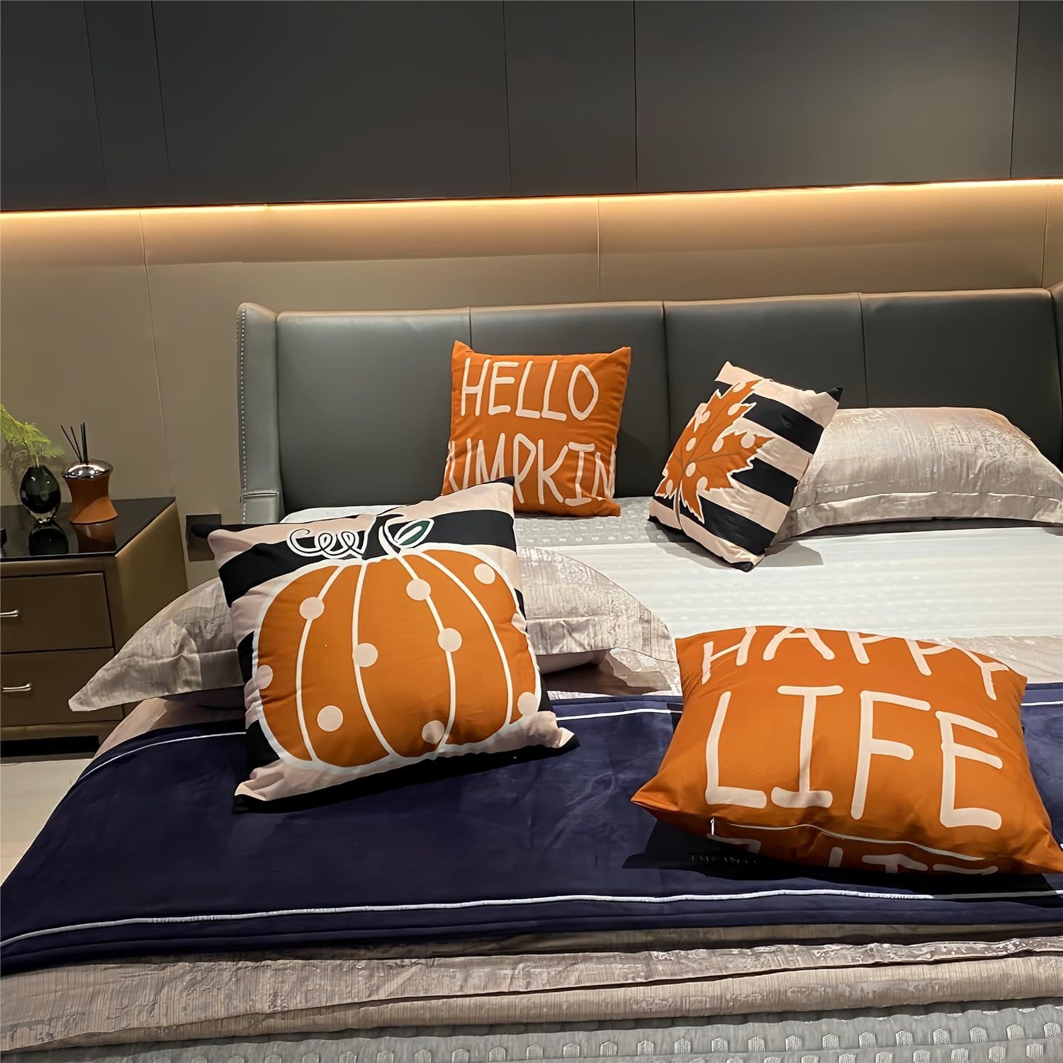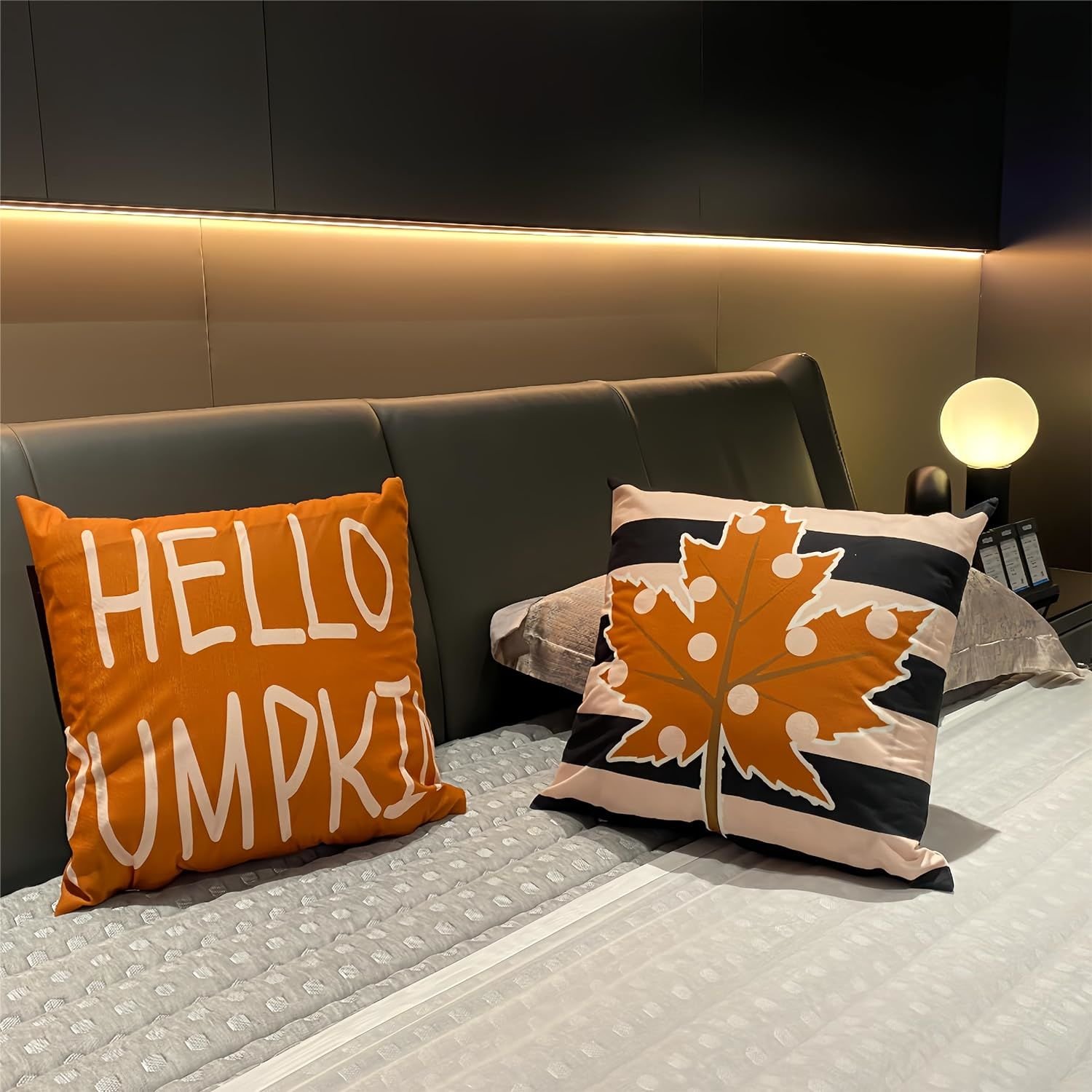 Pumpkin Throw Pillow Covers, 18 x 18 Inch Autumn Thanksgiving Harvest Polka Dot Maple Leaf Decorations for Sofa Couch Set of 4