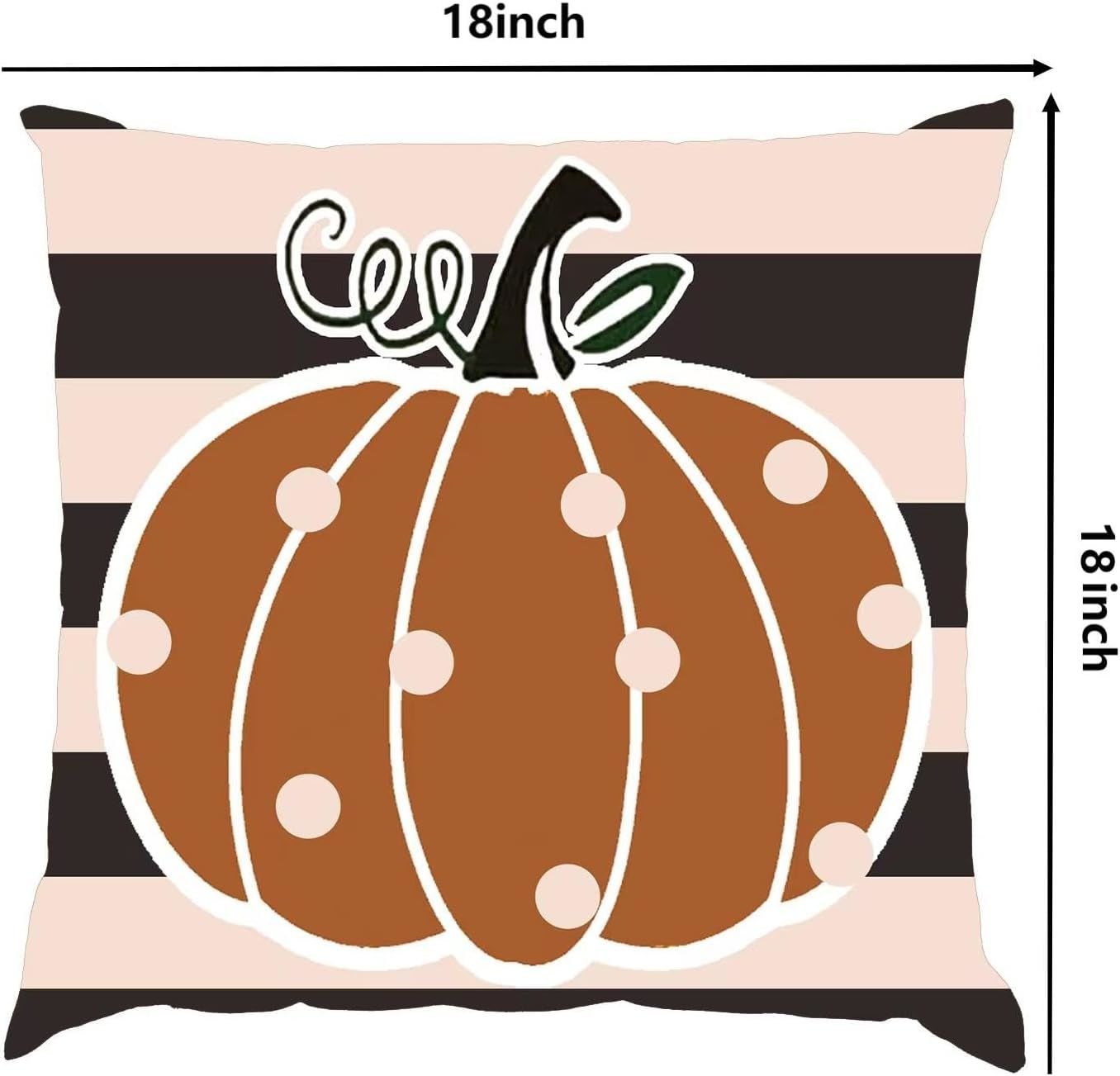 Home > Pumpkin Throw Pillow Covers, 18 x 18 Inch Autumn Thanksgiving Harvest Polka Dot Maple Leaf Decorations for Sofa Couch Set of 4